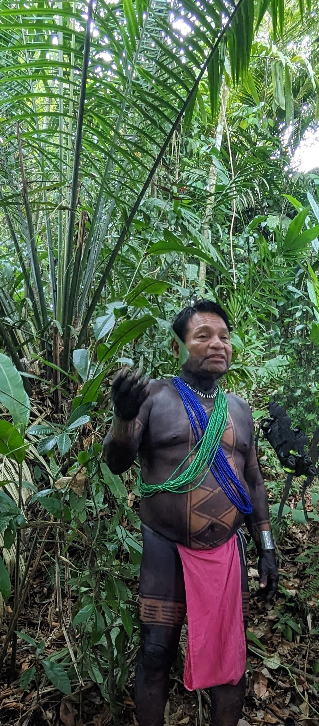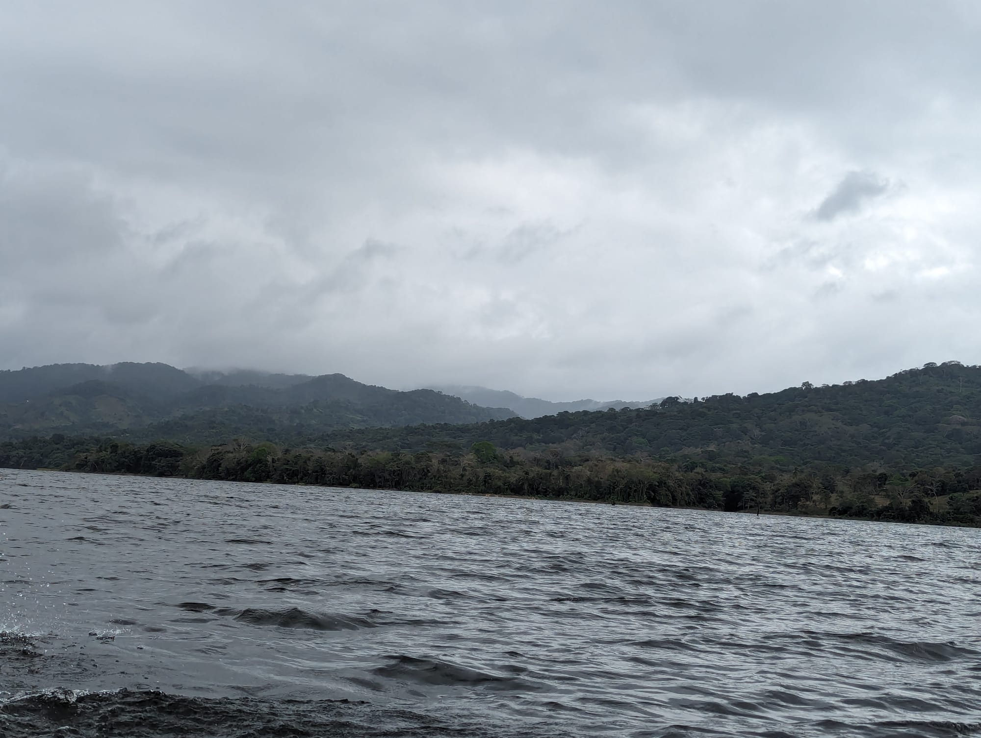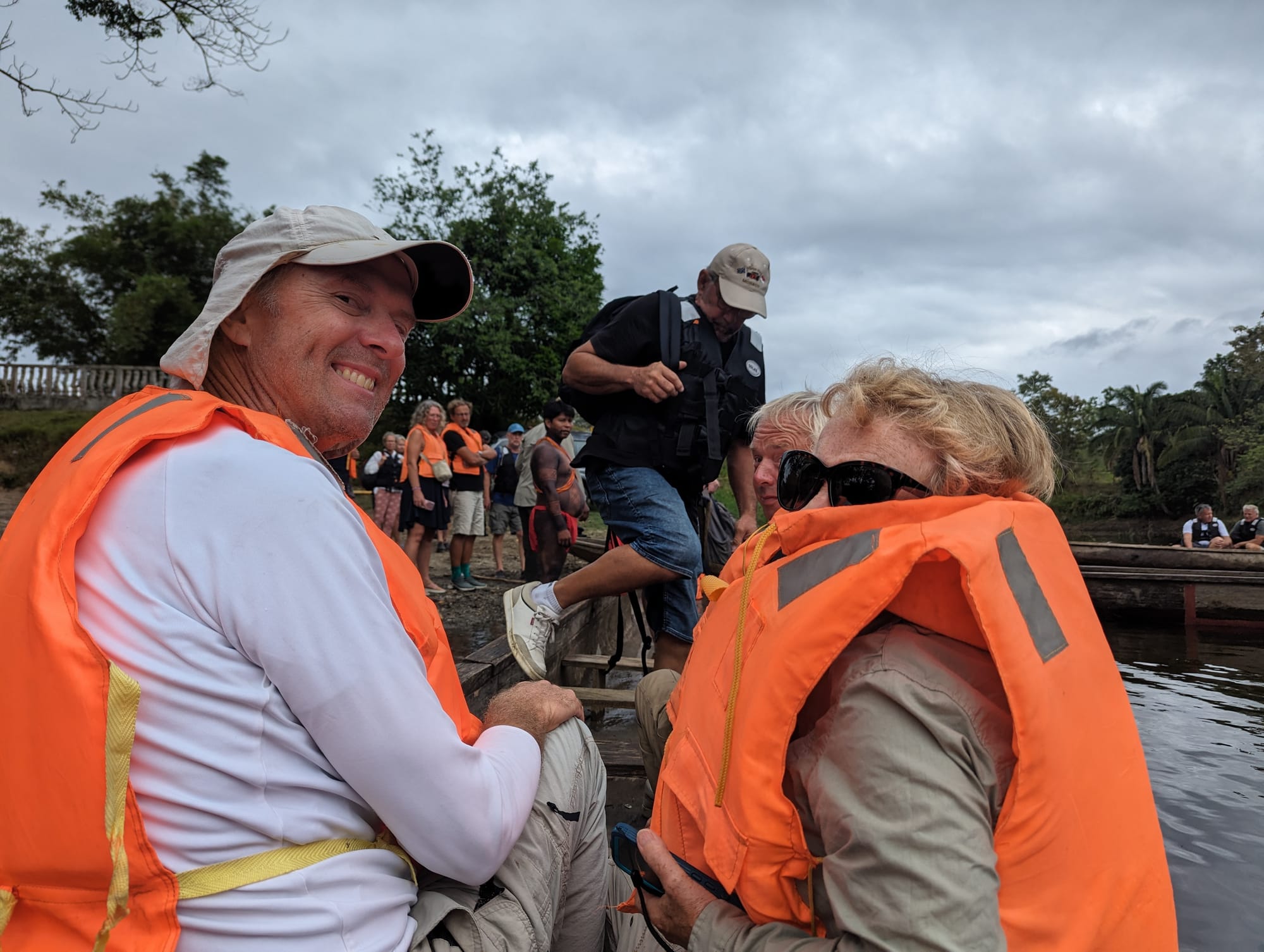 An early bus ride took us through the interior of the country. We were dropped off at a point along the Chagres River (the river that was dammed to create Gatun Lake for the locks of the Canal). Waiting for us were six dark-skinned men wearing brightly colored, long and loose-fitting loin cloths, as well as three dug-out canoes, each about 15 feet long and kitted with a 25 hp outboard (authenticity only goes so far!)