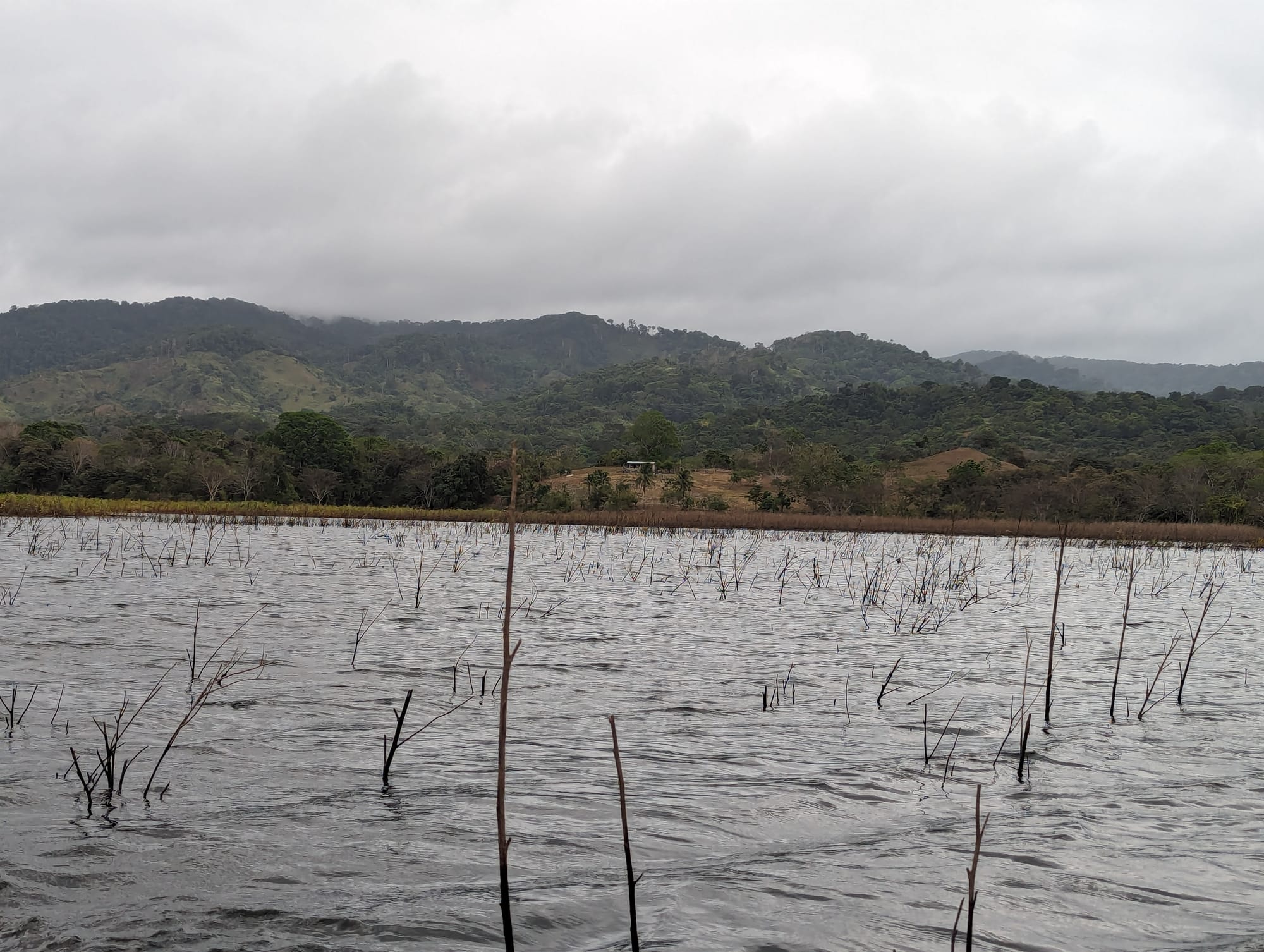 We were in the canoes for about 30 minutes as we motored through beautiful parkland. Only the Embera Indians are permitted to live here. There was an abundance of birdlife to observe…egrets herons, kingfishers. The river cut through green rolling hills with narrow stretches of tall trees, their branches reaching over the water, and wider sections that were shallow and filled with reeds. Other parts were so shallow and rocky, that had our guides not known exactly where to steer, we would have gotten stuck!