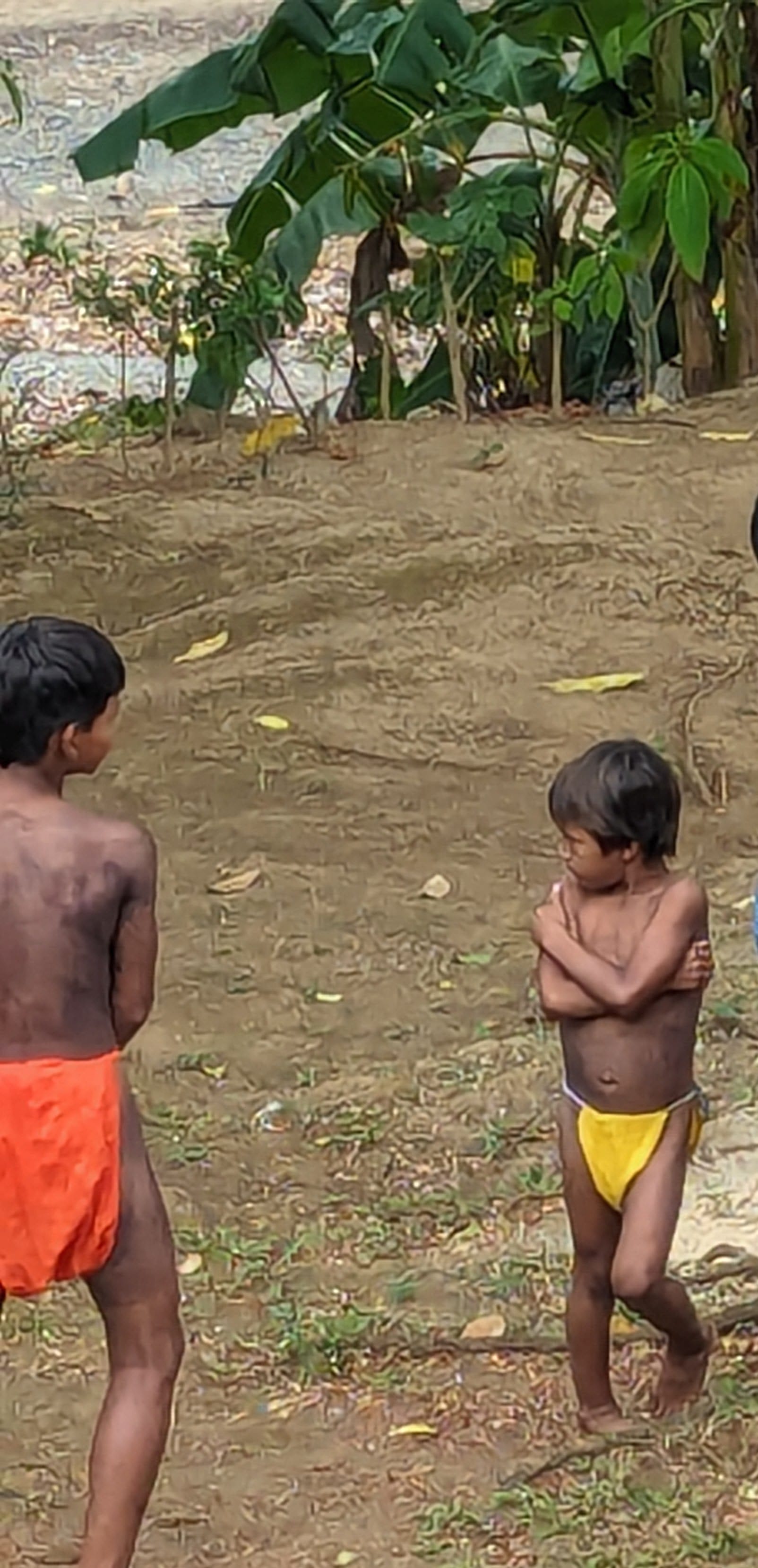 The women wore colorfully patterned wrap-around skirts and flower head-dresses. Most wore elaborately beaded tops, while others wore nothing on top but their tattoos. The little girls dressed like their mothers, while the boys wore the simple loin cloth like their dads. The people were small-statured, but heavy set. They were a very handsome group, though we noticed that most of them rarely smiled.