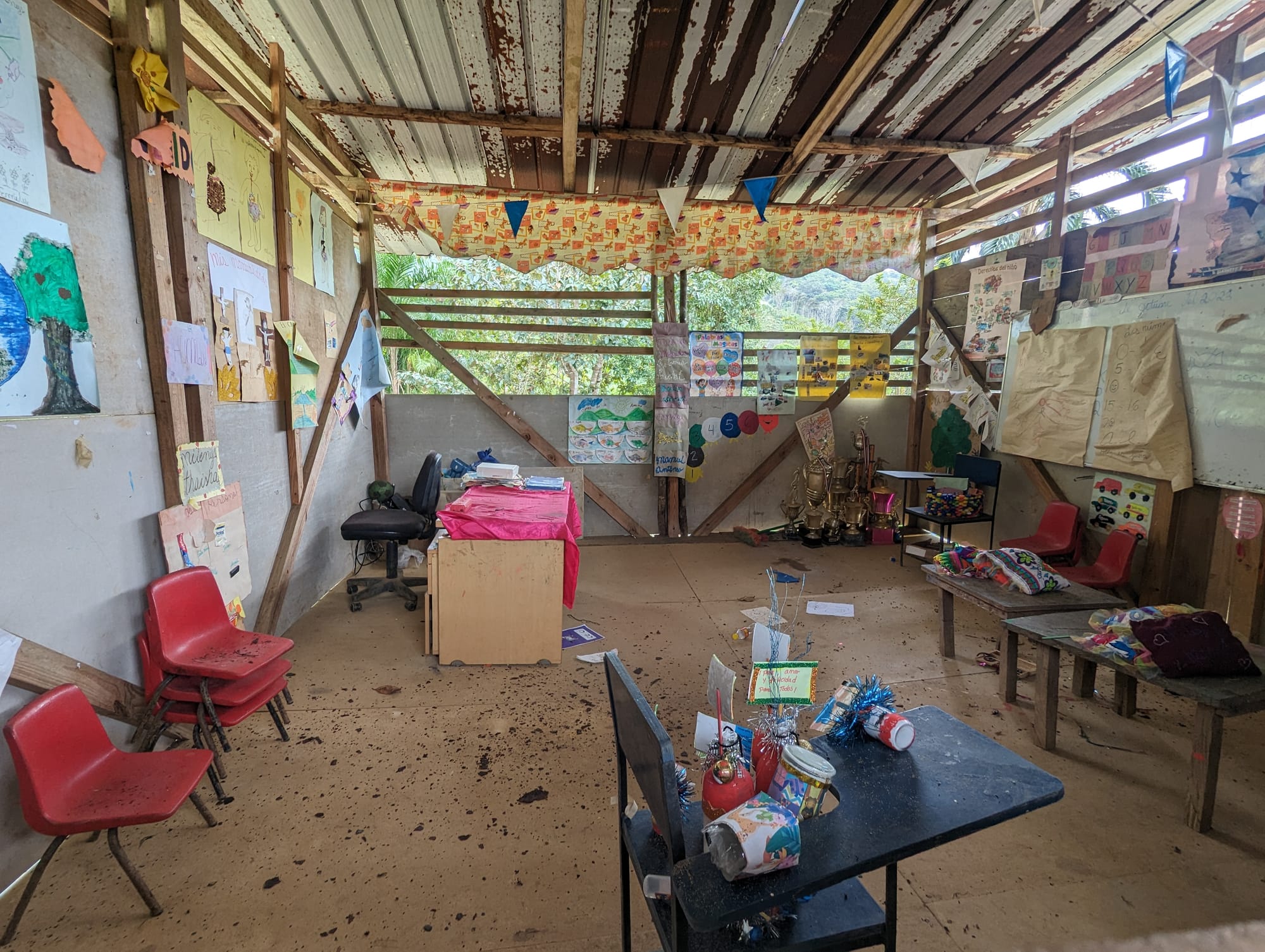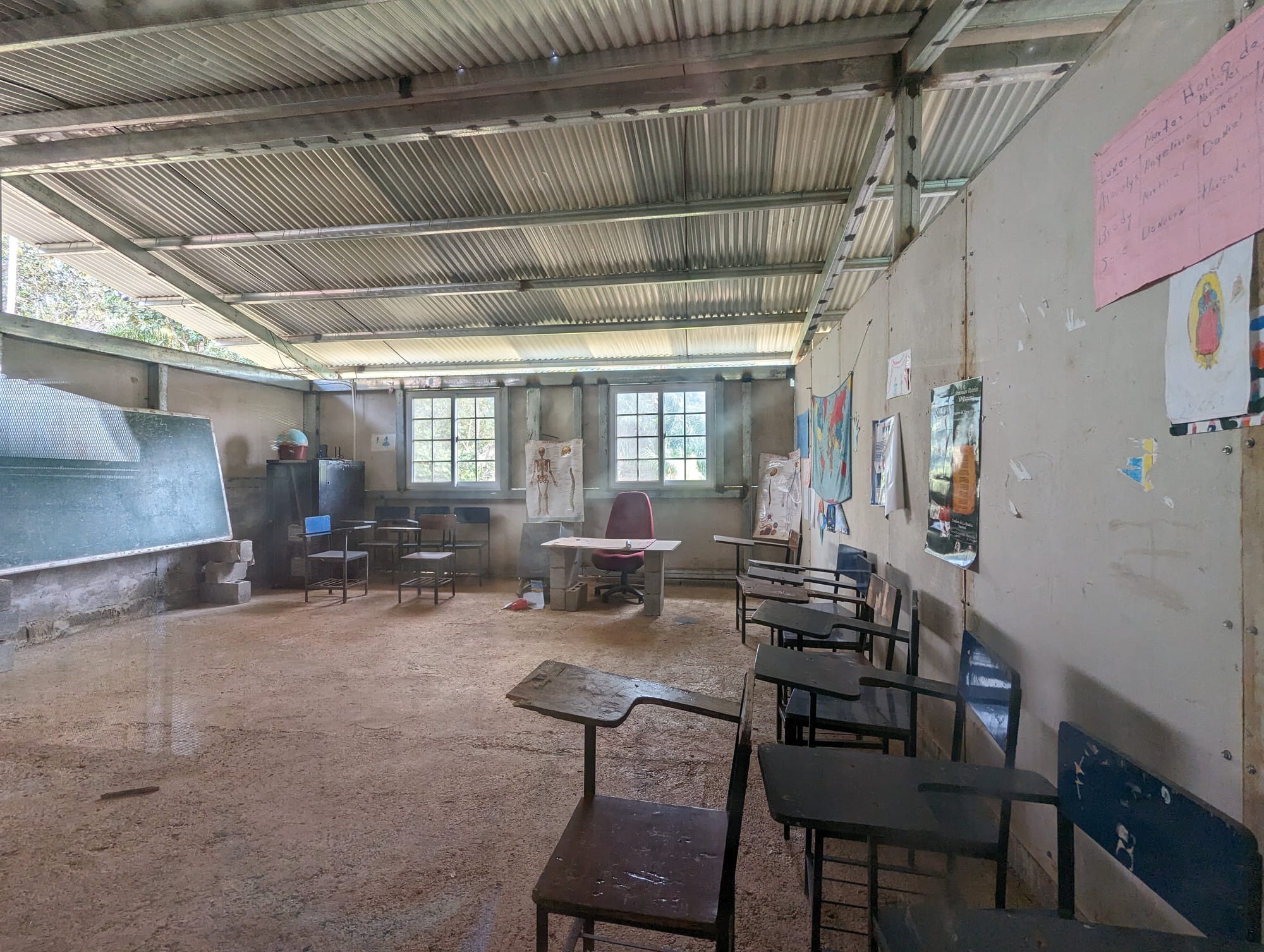 The village school was a small building with two classrooms. Children here are educated through the sixth grade. To continue a child’s education beyond that requires that the parents pay for it. Three teachers come every week and stay in a small cinder-block house next to the school building for three days. Two of them teach the regular curriculum, while the third teacher gives lessons about the Embera.