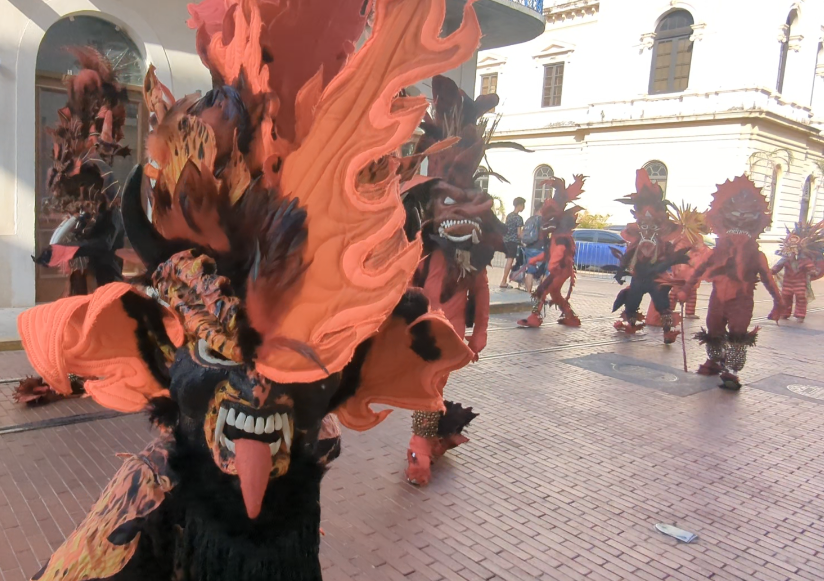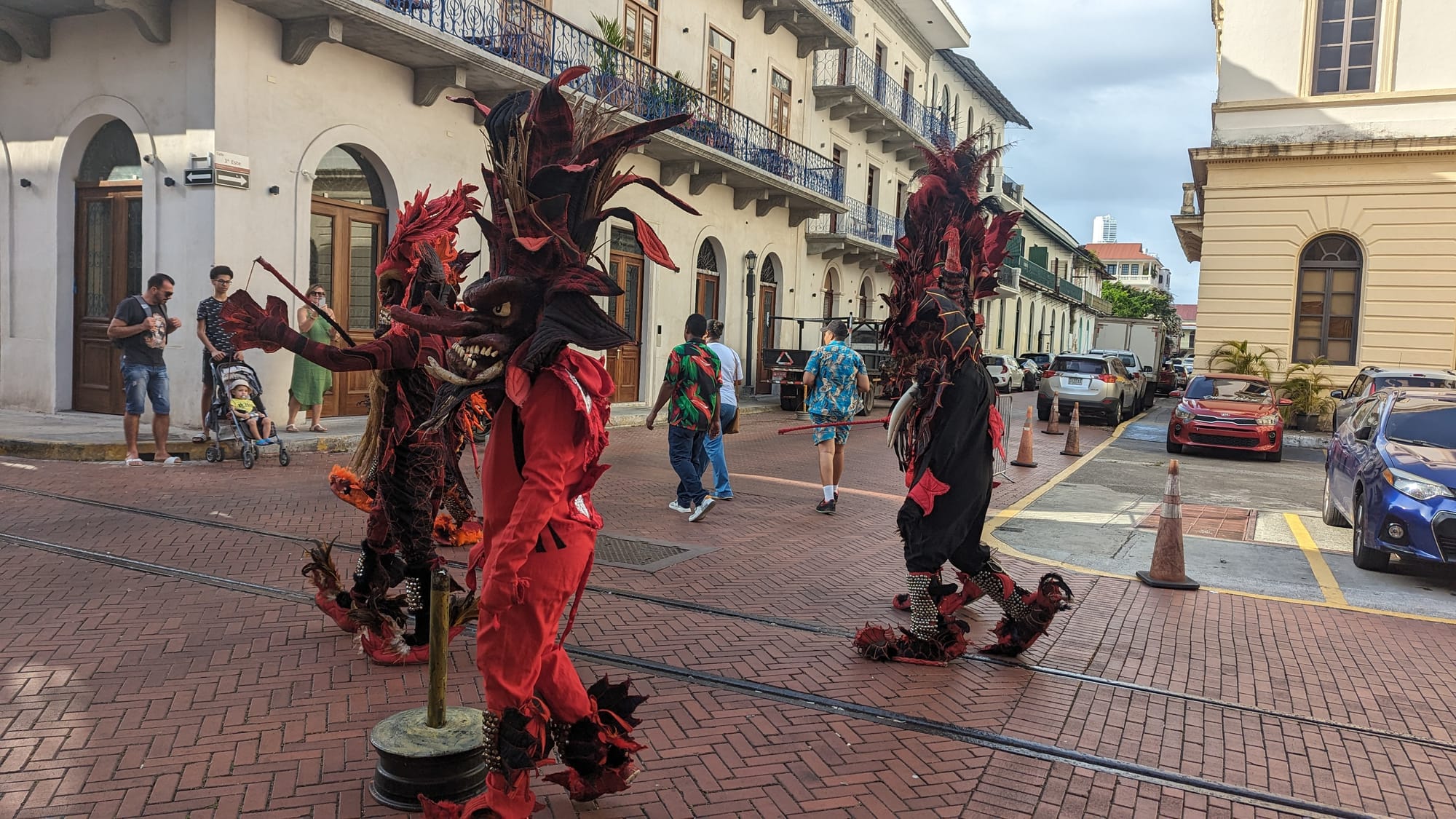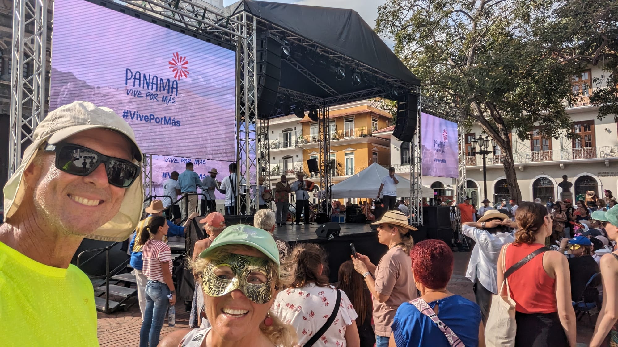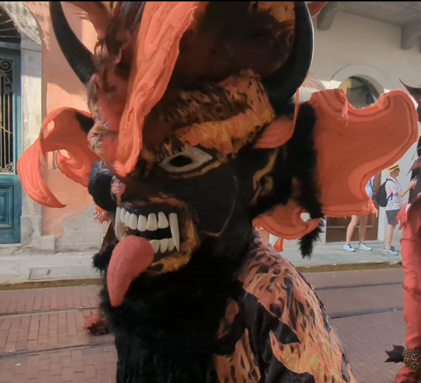We enjoyed final stroll along an elevated seawall canopied with ancient azalea vines before heading back…stunning! A surprise encounter with a dance troupe was the perfect way to end the day. They wore striking costumes of primitive and fiendish-looking animals, and seemed to really enjoy startling the onlookers. We followed them to a piazza where there was a band playing lively Panamanian music, as well as other groups of performers waiting for their turns on the stage. Carnival for the tourists!