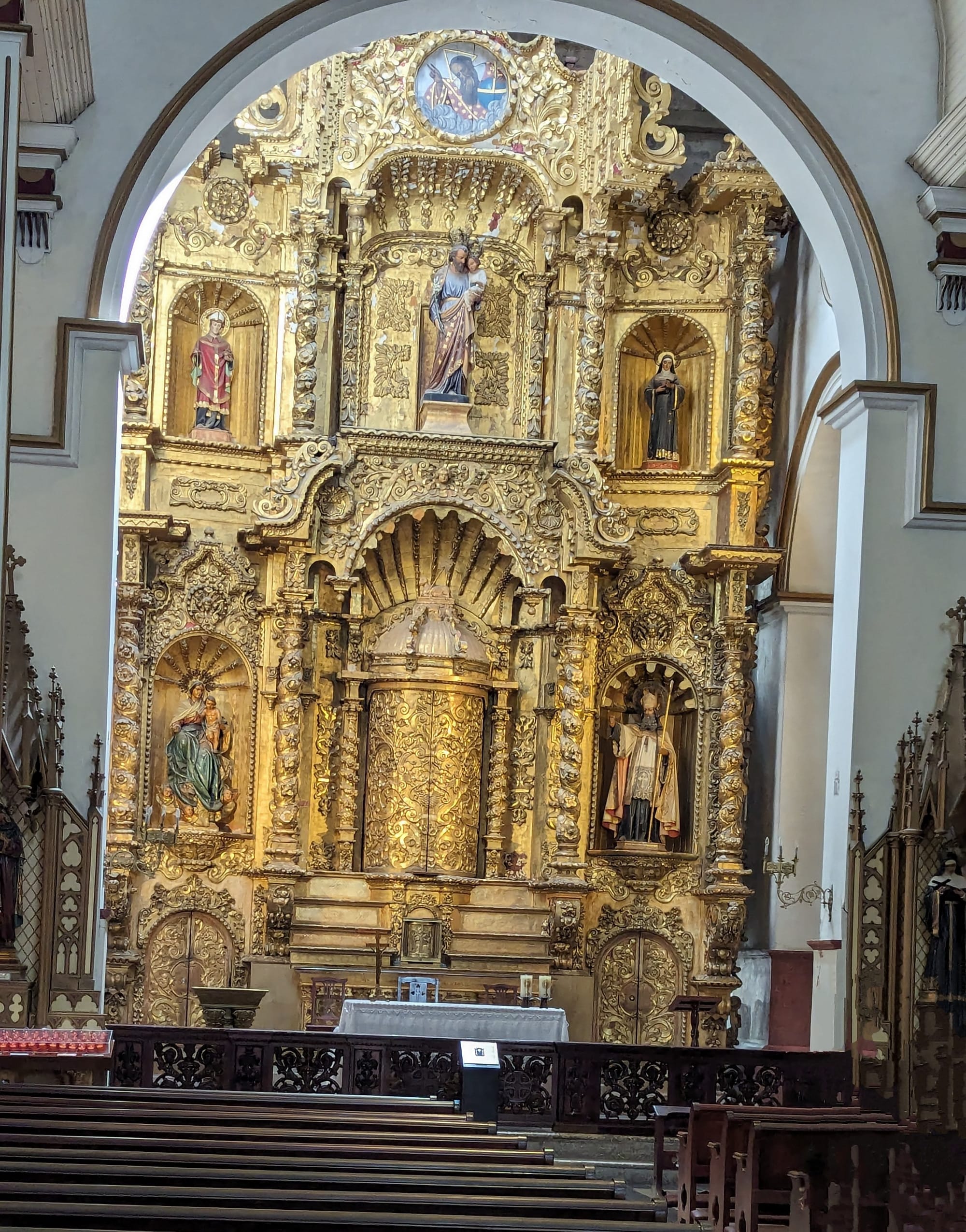 The area is most definitely a tourist destination. Narrow streets were lined with restaurants small shops, and street vendors. We walked into a Catholic church that was built in 1675 and is still active today. It was adorned with a beautiful gold altar, a reminder of why the Spanish came here in the first place.