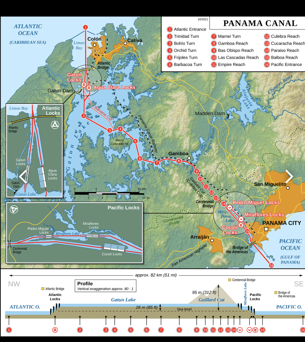 The Panama Canal is two distinct canals. The older one, which we went through, was completed in 1914. It is much narrower and cannot accommodate today’s immense supertankers. These boats use the new Canal, which was completed in 2016.