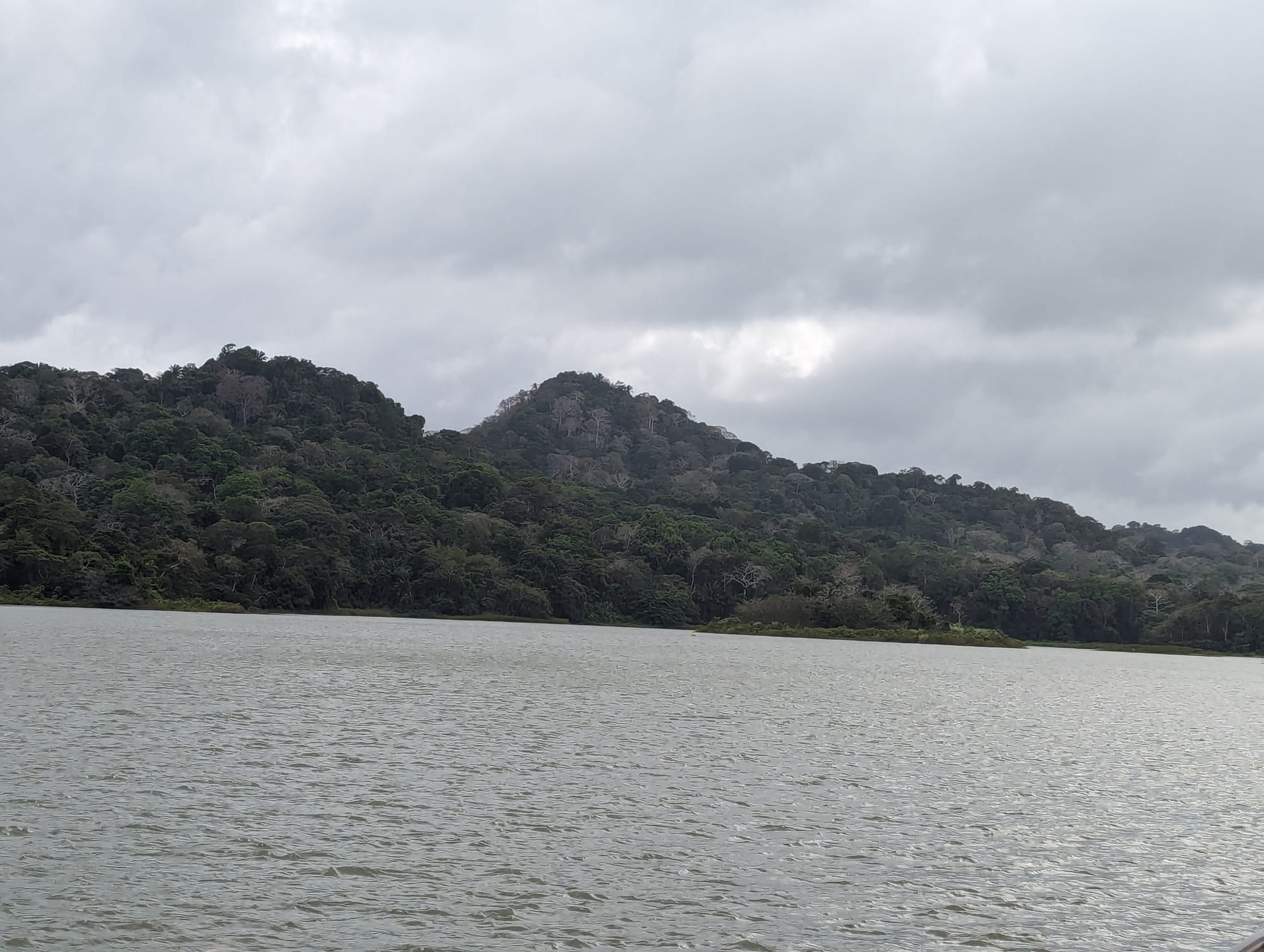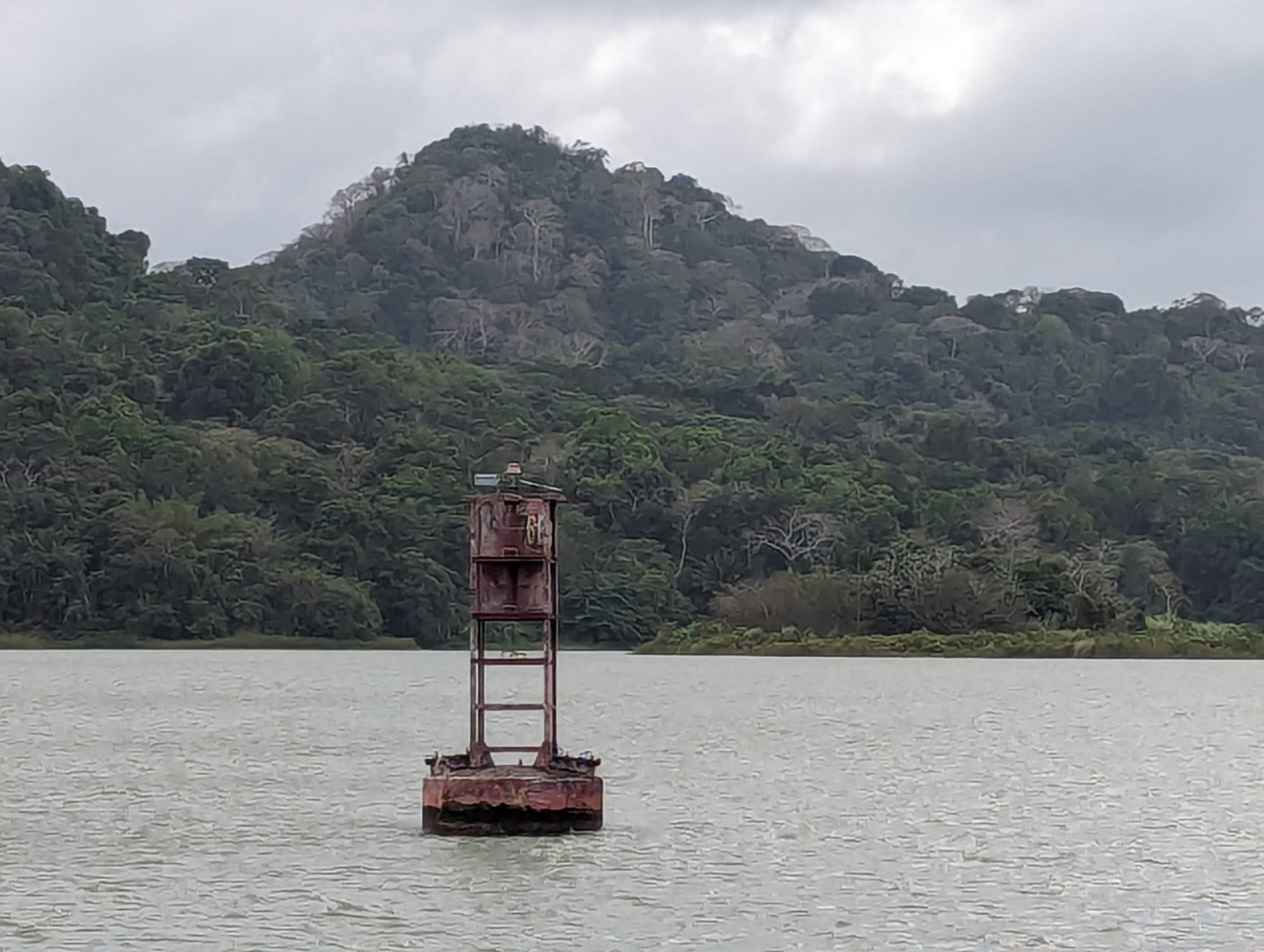 Gatun Lake is quite beautiful as it is located in the middle of a national park. Trees lined the banks, and it had a wild look to it. We were required to stay in the 50-ft channel that was well-marked for all the ship traffic passing through. At one point we were motoring alongside a big cargo ship whose propeller kept pulling our stern toward it. You really had to pay attention to avoid getting too close to the ship and too close to the shore because it becomes very shallow very quickly.