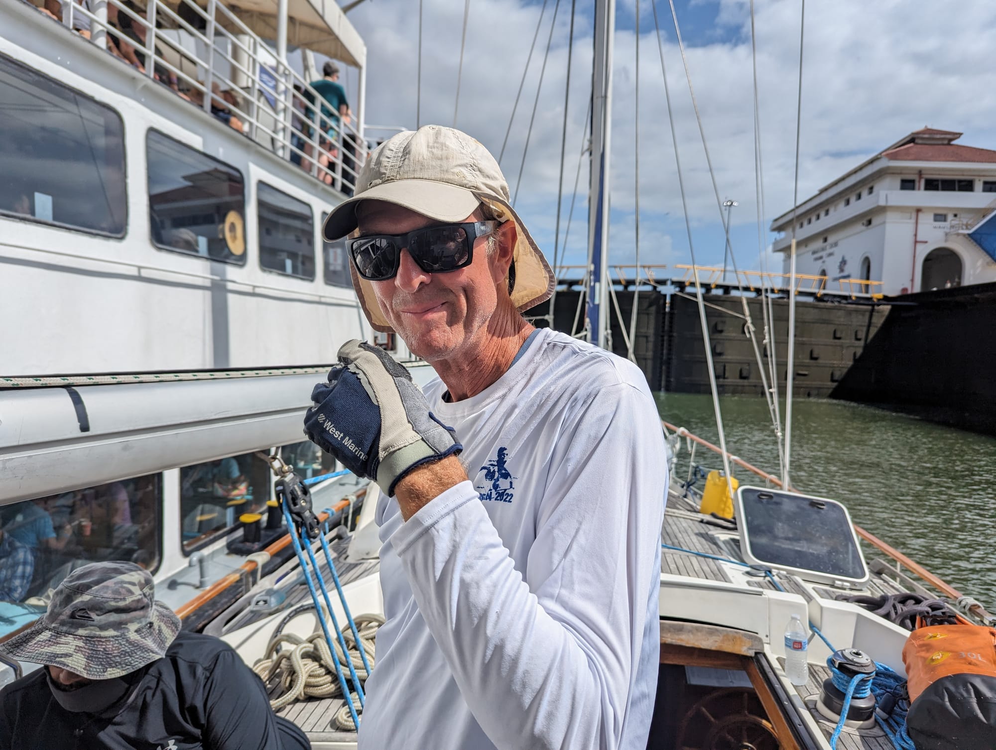 Our advisor was named Ricardo, but preferred to be called Ricky (yes, Lucy, Ricky Ricardo 😊). A former tugboat captain, he was now an instructor for Canal advisors and pilots. He and the young line-handlers do transits as moonlighting opportunities on their days off from work and school.