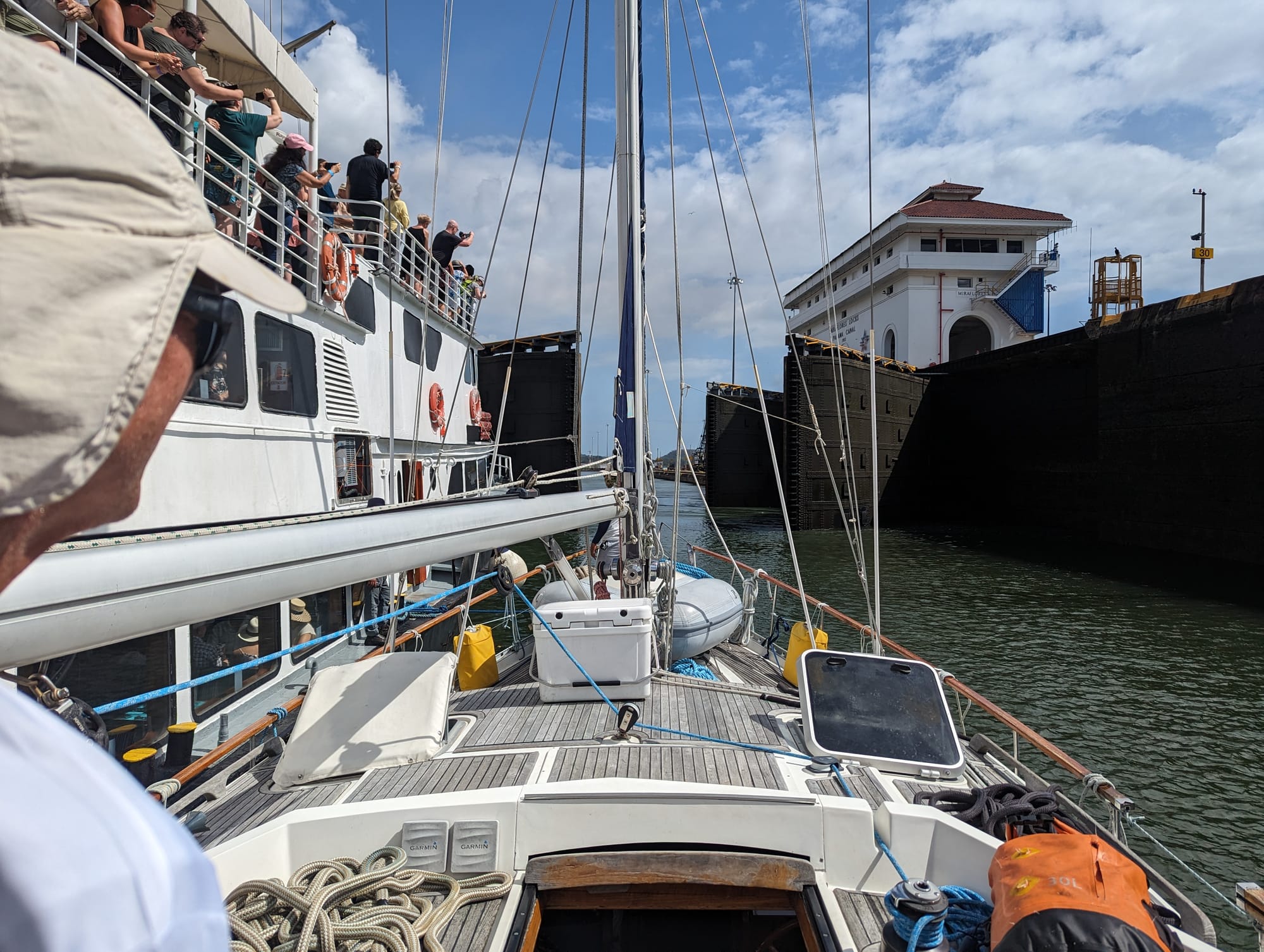 So, this lock was going to take us down closer to the level of the Pacific Ocean. And we watched with fascination as the water dropped us 54 feet.