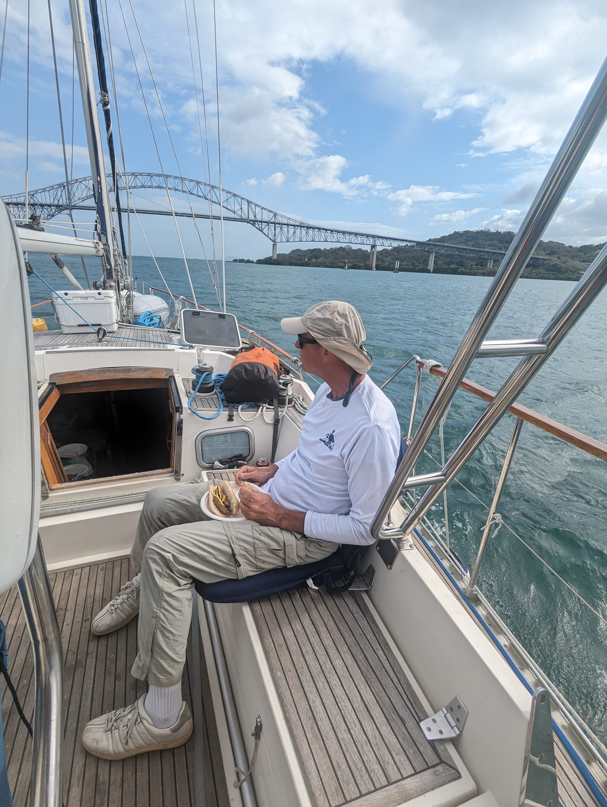 Each boat was required to have four line-handlers, a helmsman, and an advisor (i.e., pilot) on board for the transit. And I was in charge of having shacks available and preparing meals (breakfast, lunch and dinner!) for all of them. Not much time to prepare something awesome, but we managed. 😊